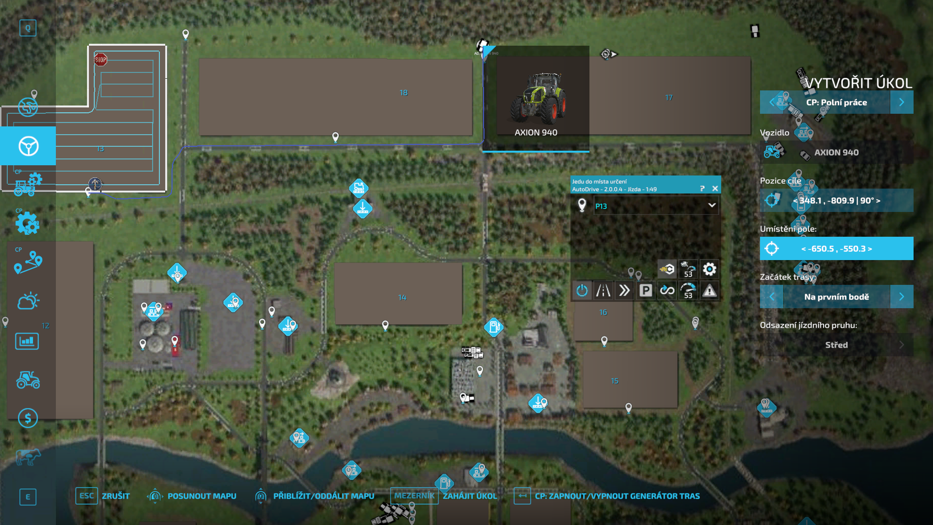 7. Vlastní nastavování tras je obdobné jak CP v FS19 (nejlepší je pomalu experimentovat)
